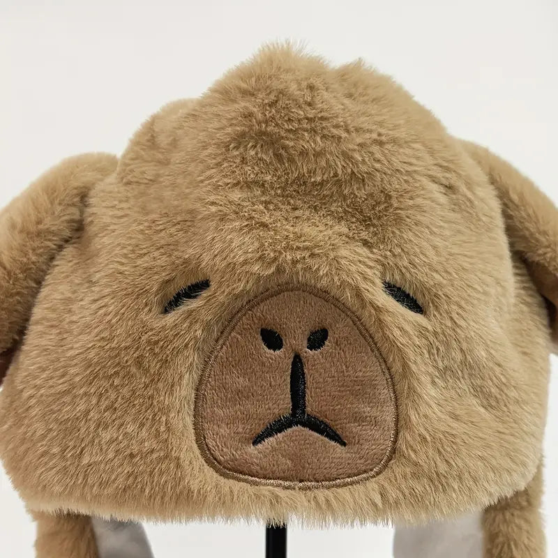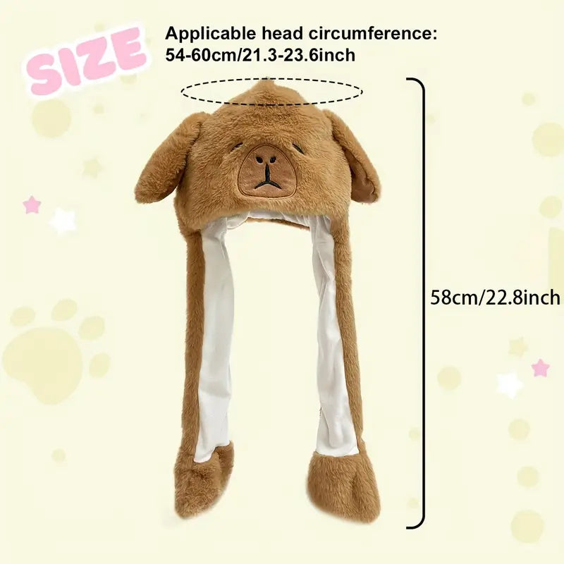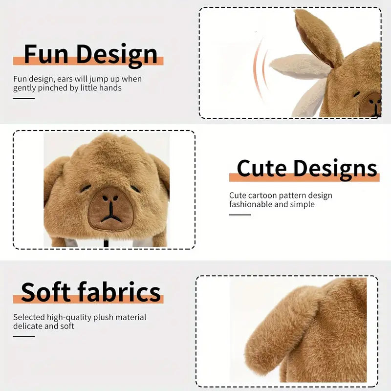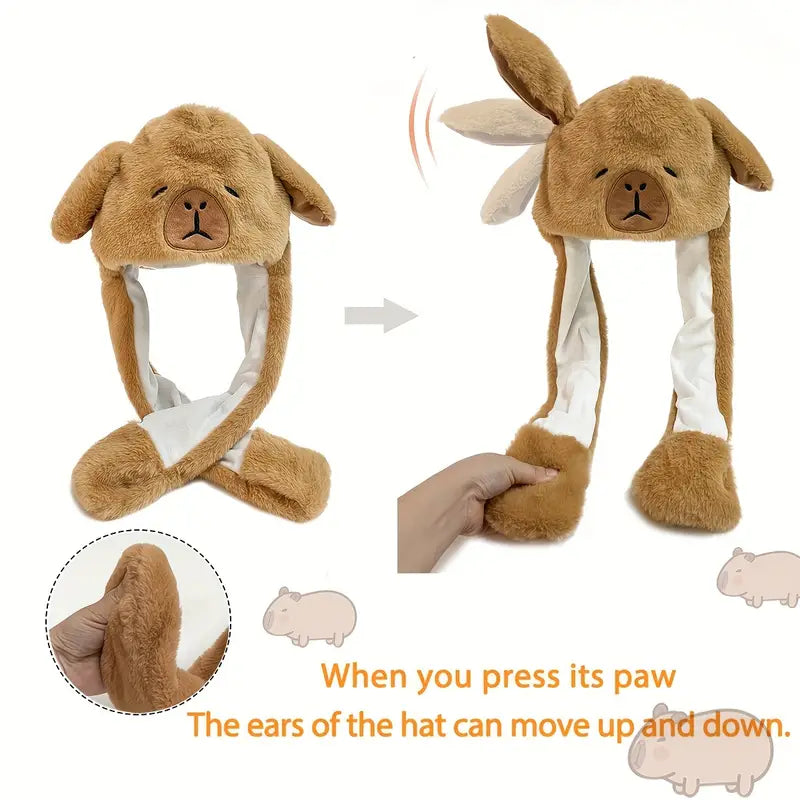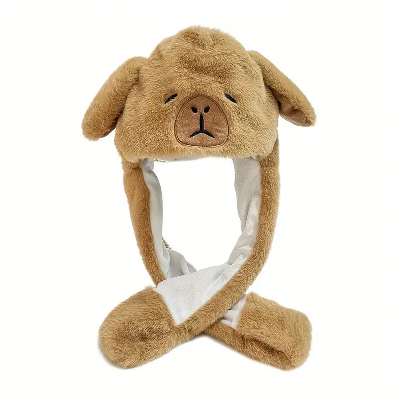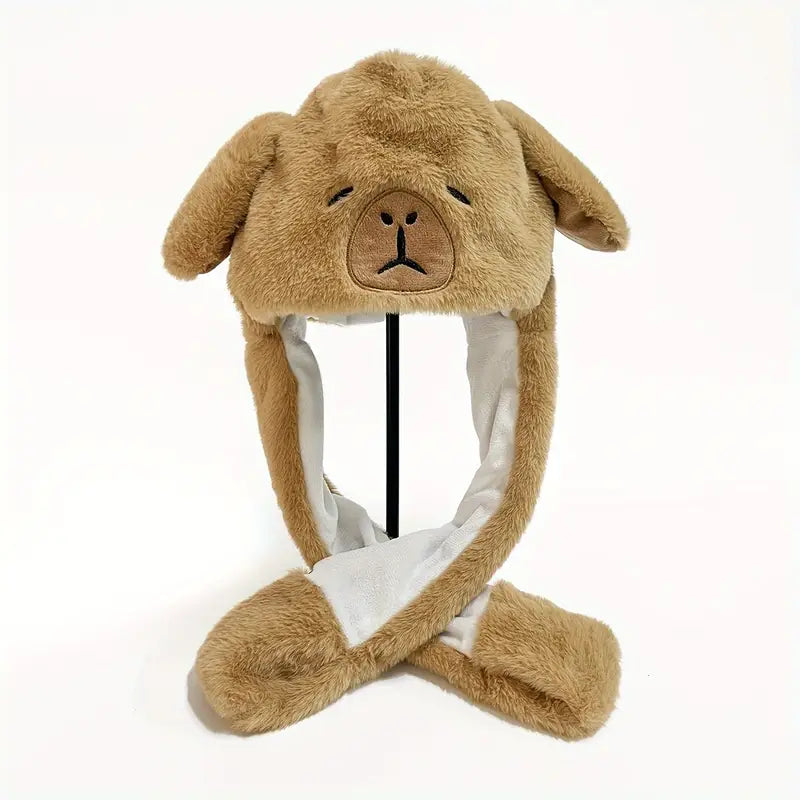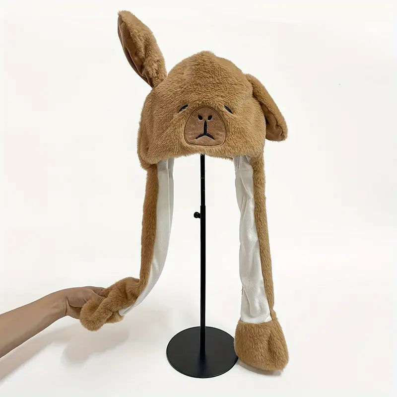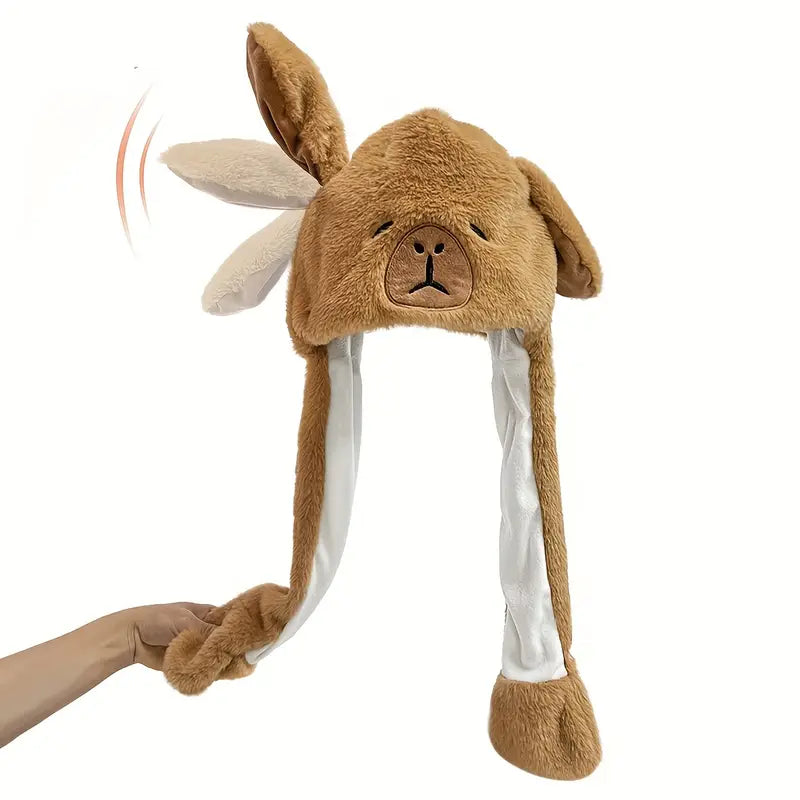 Cute Cartoon Capybara Plush Hat with Moving Ears